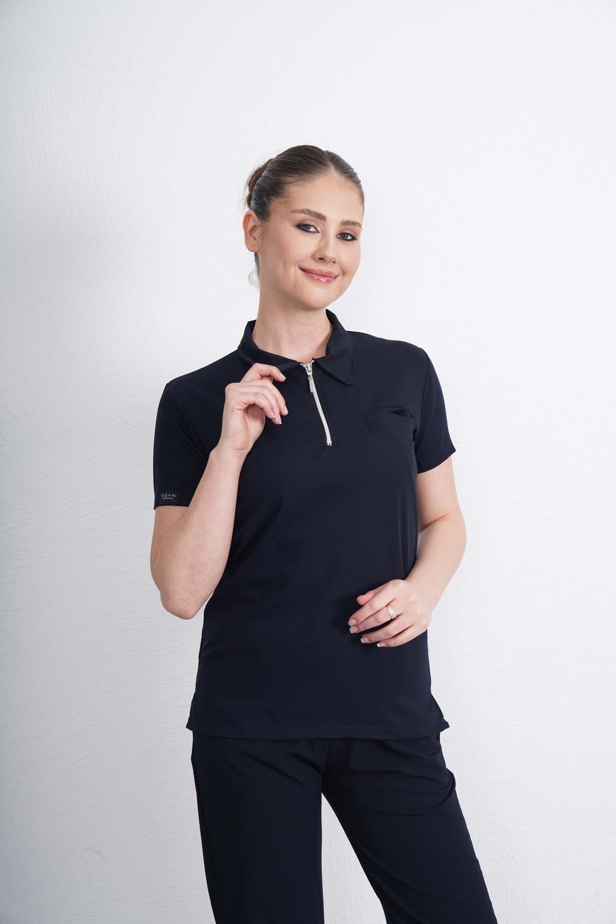 Home EXCLUSIVE LYCRA Exclusive Lycra Siyah Fermuarlı Tek Üst Hemşire Forması, Cerrahi Forma, Scrubs Üniforma (UNISEX)